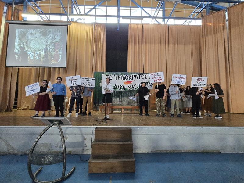 Η επέτειος της ανακήρυξης του αποκαλούμενου «ψευδοκράτους» υπενθυμίζει το συνεχιζόμενο Κυπριακό ζήτημα και την ανάγκη για ειρηνική επίλυση, αμοιβαίο σεβασμό και επανένωση του νησιού μέσα από διάλογο. Σε μια μέρα που προκαλεί έντονα συναισθήματα και διαφορετικές αναγνώσεις της ιστορίας, οι μαθητές του Σχολείου μας σε μια σεμνή και συγκινητική εκδήλωση διαμαρτυρίας ζωντάνεψαν σκηνές από την Τούρκικη εισβολή στο νησί μας και έστειλαν το δικό τους μήνυμα καταδικάζοντας τη συνεχιζόμενη παρανομία σε βάρος της Κυπριακής Δημοκρατίας.