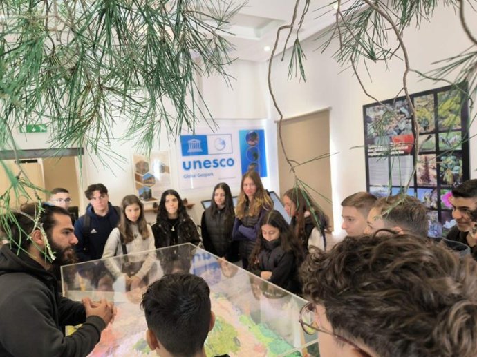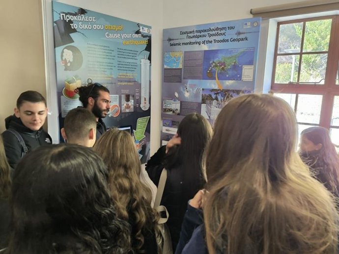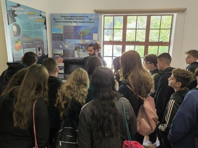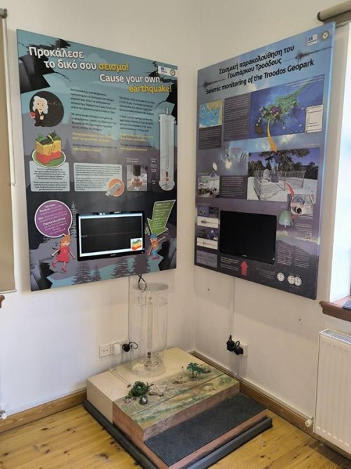 Στην είσοδο του κτιρίου, μας καλωσόρισε ένας καταπληκτικός γεωλογικός κήπος, ο οποίος αναπαριστά τον οφιόλιθο του Τροόδους. Σε αυτό τον κήπο είδαμε πετρώματα από όλη την ακολουθία του Τροόδους, σε σειρά μάλιστα με την οποία συναντώνται σε πραγματικές συνθήκες. Στη συνέχεια μεταβήκαμε στον εσωτερικό χώρο του κτιρίου, ξεναγηθήκαμε σε όλες τις αίθουσες του και τέλος παρακολουθήσαμε ένα ενδιαφέρον ντοκιμαντέρ για το Γεωπάρκο. Ήταν πραγματικά μια καταληκτική εμπειρία!