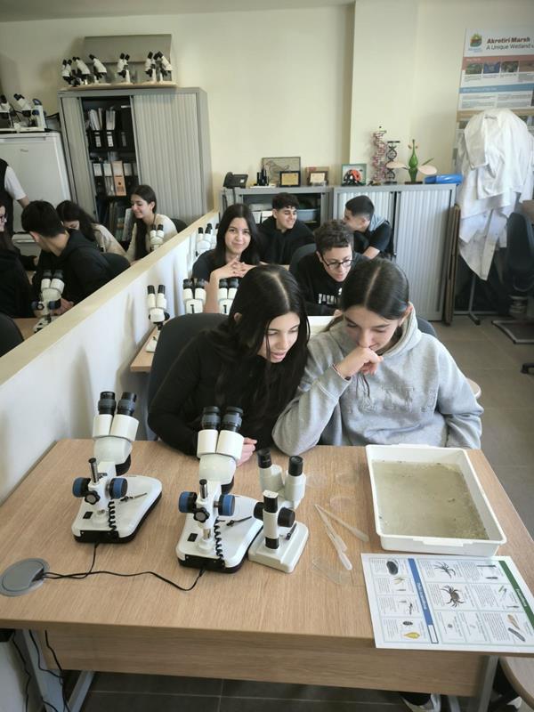 Κατά τη διάρκεια της επίσκεψης, οι μαθητές/τριες επισκέφθηκαν τη λίμνη της περιοχής, όπου συνέλεξαν δείγματα νερού. Στη συνέχεια, επέστρεψαν στο εργαστήριο του κέντρου, όπου με τη χρήση ειδικών στερεοσκοπίων μελέτησαν τα δείγματα που είχαν συλλέξει, με σκοπό να εντοπίσουν μικροοργανισμούς που ζουν στο νερό. Μέσα από αυτή τη διαδικασία, κατάφεραν να κατανοήσουν πώς η παρουσία ή η απουσία συγκεκριμένων οργανισμών μπορεί να αποτελέσει ένδειξη για τα επίπεδα ρύπανσης του νερού, καθώς ορισμένοι οργανισμοί είναι πιο ανθεκτικοί στην ρύπανση, ενώ άλλοι επιβιώνουν μόνο σε καθαρό περιβάλλον.