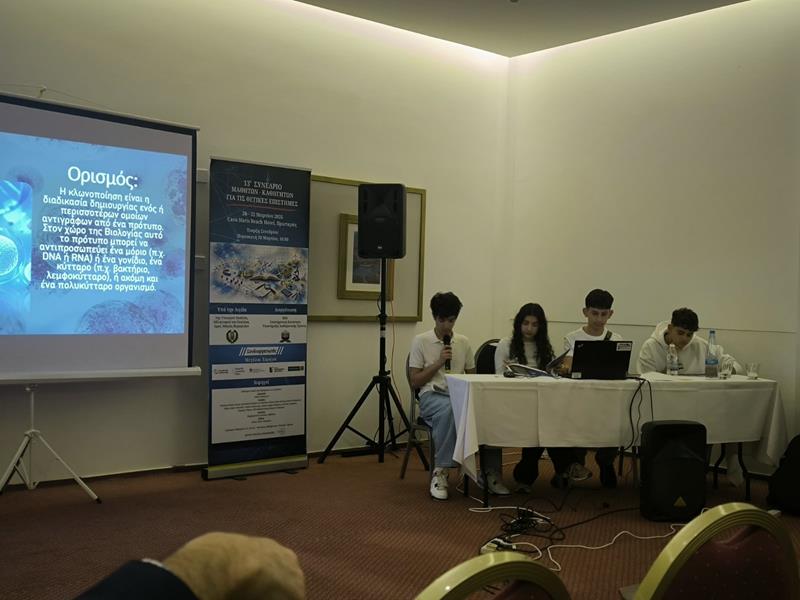 Οι 34 μαθητές είχαν την ευκαιρία να παρουσιάσουν ζωντανά τις εργασίες τους στον χώρο του συνεδρίου, υπό την επίβλεψη των καθηγητριών Λουκίας Λουκά και Παναγιώτας Μονιάτη, βιώνοντας την εμπειρία της δημόσιας παρουσίασης και της επιστημονικής συζήτησης. Η συμμετοχή τους δεν περιορίστηκε μόνο στην παρουσίαση, οι μαθητές μοιράστηκαν ιδέες, αντάλλαξαν γνώση με συνομηλίκους τους από άλλα σχολεία και ανακάλυψαν νέους τρόπους προσέγγισης των θετικών επιστημών.
